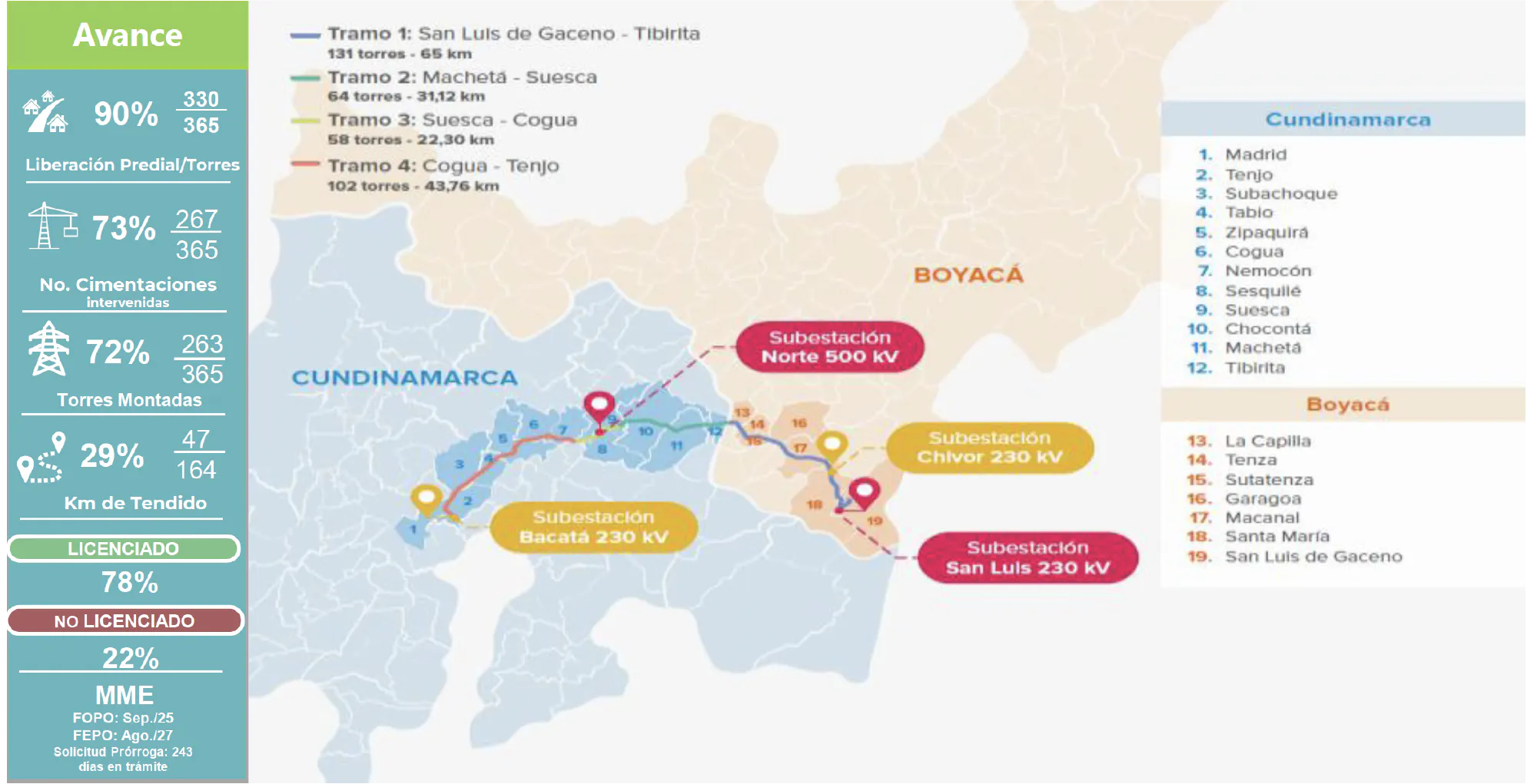 - ✓ Obras suspendidas, sujetas a viabilidad de modificaciones de licencia, trámites de sustracción y liberaciones de torres