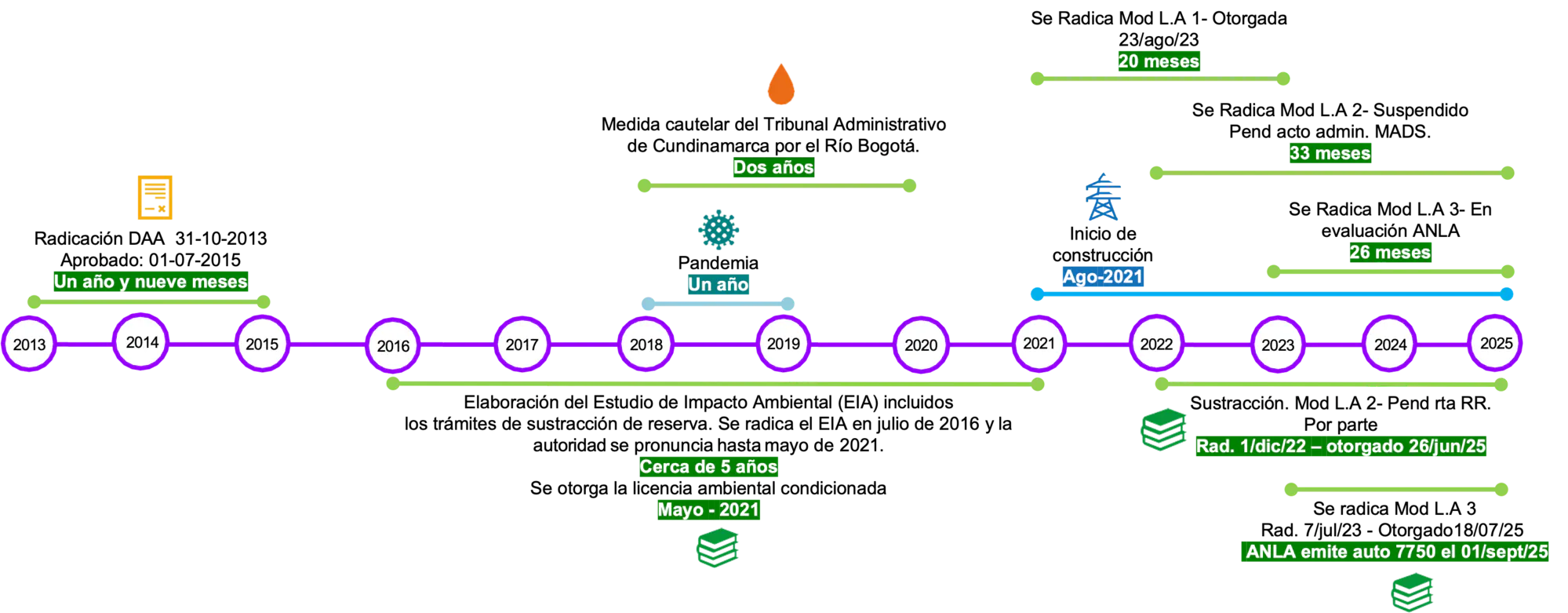 | Mod.L.A 3 SE NE (52 Sitios de torre; SE Norte y Chivor) | 21-jul-23 | Evaluación | ANLA mediante auto No. 7750 del 01/sep/25, notificado el 06/sep/25 a ENLAZA, levanta la suspensión del trámite de evaluación MLA 3 | 25 |