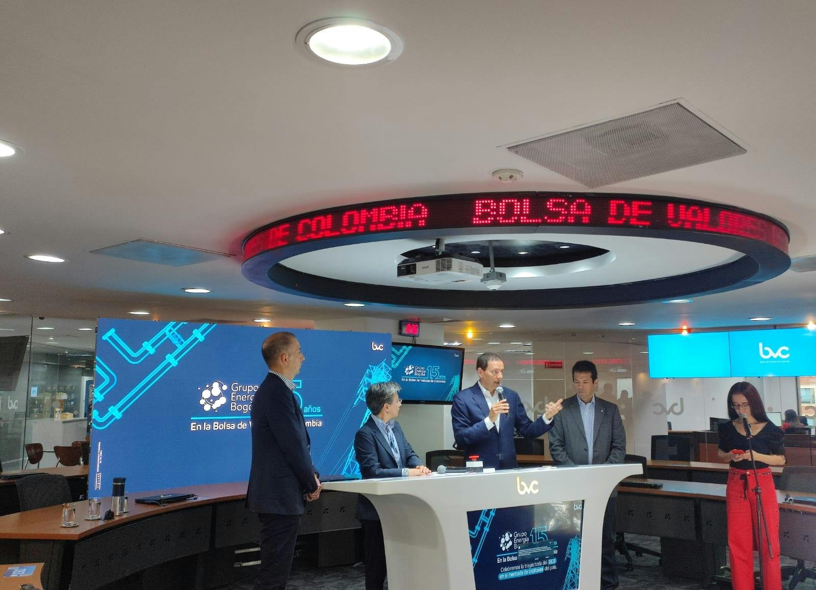 Para celebrar la fecha, en la sede de bvc, en Bogotá, Claudia López, alcaldesa Mayor del Distrito Capital –el accionista mayoritario del GEB– se reunió con los directivos de la Bolsa y del Grupo, para, en un acto simbólico, tocar la campana del escenario bursátil. El evento también contó con la presencia de Nadya Milena Rangel, secretaria de Hábitat, y Juan Carlos Thomas Bohórquez, subsecretario de Hacienda, entre otros funcionarios de la Administración Distrital.
